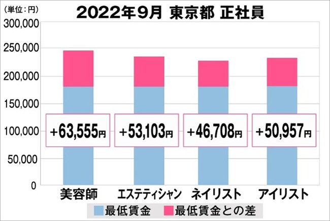 全研本社株式会社(本社:東京都新宿区、代表取締役社長:林 順之亮)は、2022年9月に「最低賃金から見る美容業界の給料調査」を実施しました。本調査は、美容業界専門の求人サイト『美プロ』に掲載されている求人募集時の給料を抽出し、職種別・雇用形態別・地域別の最低賃金との差を算出しました。