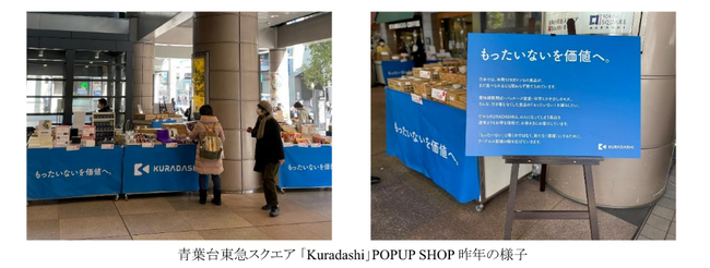 株式会社東急モールズデベロップメント(本社所在地:東京都渋谷区、代表取締役社長:佐々木桃子)は、同社が運営する神奈川県内の4つの地域密着型商業施設で、ソーシャルグッドマーケット「Kuradashi」を運営する株式会社クラダシ(本社所在地:東京都品川区、代表取締役社長 CEO:関藤竜也)の POPUP SHOP を開催します。2022 年10月から11月までの約2カ月間、「中央林間東急スクエア」「青葉台東急スクエア」「たまプラーザ テラス」「港北 TOKYU S.C.」で順次オープン。「青葉台東急スクエア」は昨年に引き続き、2回目の開催となります。