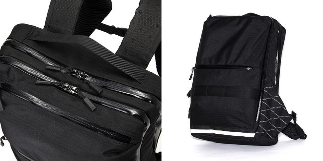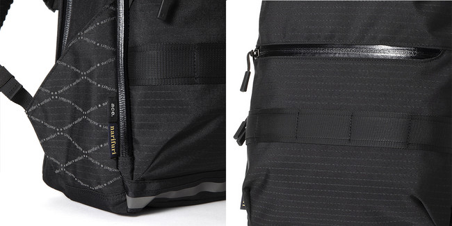 コラボレーションモデルでは、メイン収納部・PC収納部・フロントポケットのファスナーにコーティングタイプを採用し耐水性を高めました。また夜間の視認性を向上させるリフレクターテープを追加しています。さらにショルダーハーネスと腰部分のパッドに通気性に優れた凹凸メッシュを採用しました。