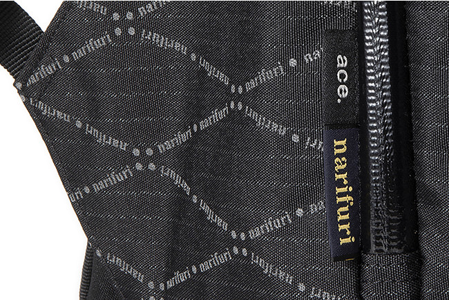 「自転車通勤に適したビジネスリュックを作りたい」との思いから2021年に販売した「ace.×narifuri」コラボレーションモデルがサイクリストに好評をいただいたことから、第2弾「ラパックエアV2 NF2」の発売が決定しました。背中の蒸れを軽減するエアベンチレーション搭載ビジネスリュック「ラパックエアV2」をベースに、「narifuri」監修の下、自転車通勤を想定した機能やデザインを取り入れています。第2弾はシックなオールブラックカラーで、リフレクターを兼ねた「narifuri」オリジナルプリントがデザインのポイントとなっています。