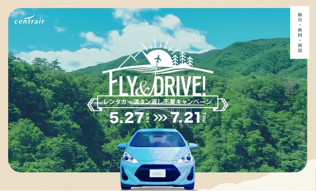 一人でも多くのお客様に「Fly&Drive!」を体験いただくため、期間中に中部国際空港発で仙台・秋田・新潟路線に搭乗し、トヨタレンタカーをご利用のお客様を対象に、レンタカー返却時のガソリン満タン返しが不要になるキャンぺーンです。