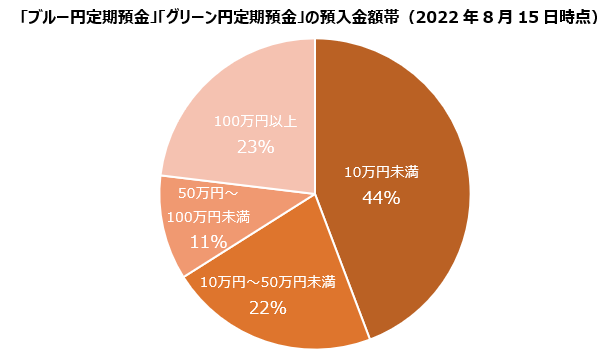 3.「ブルー円定期預金」「グリーン円定期預金」のお預け入れ金額は、44%が10万円未満