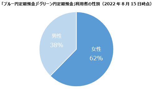 1.「ブルー円定期預金」「グリーン円定期預金」にお預け入れいただいたお客さまは、女性が約6割(62%)
