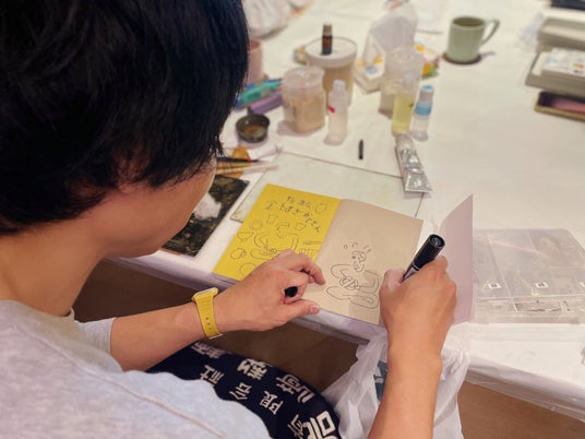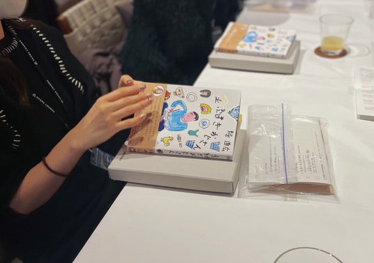 ワークショップが終了した後も、参加者の皆さんが堀道広さん手づくりの「金継ぎ部道具セット」や金属粉を購入し、家に帰ってからも工程の続きができることを楽しみにする様子も。また、堀道広さんに参加者12人の『金継ぎおじさん』単行本へ、それぞれ違う繕井継男のイラストとサインを描いていただきました。丁寧で誠実なレクチャーと金継ぎの工程は、約2時間半のワークショップが短く感じるほど、参加者が興味深く器に集中する時間になりました。工程表に堀道広さんが「おおらかに金継ぎを楽しみましょう」とメッセージを書いた通り、大切な器を繕い語るおだやかな空間は、『金継ぎおじさん』の世界観を体現するようなじんわり素敵なワークショップでした。