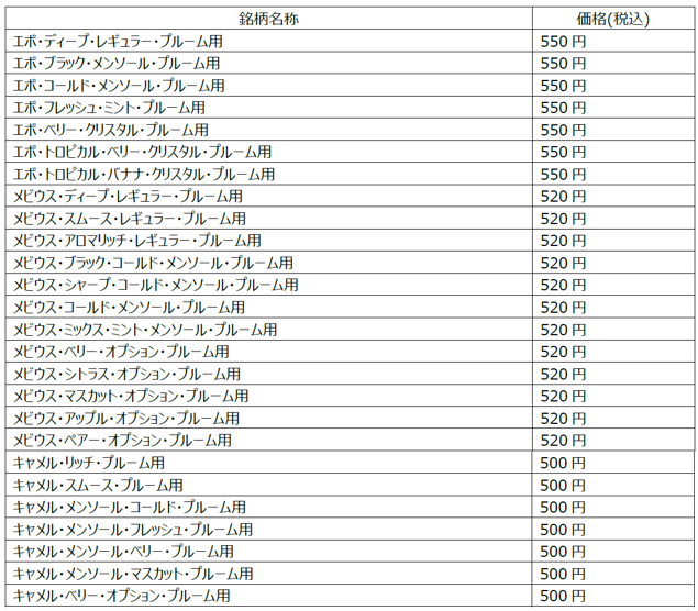 ※ 「エボ・コールド・メンソール」については、既存品の在庫がなくなり次第、順次アップデート後の商品に切り替わるため、切り替えタイミングは販売状況に応じて前後する可能性があります。