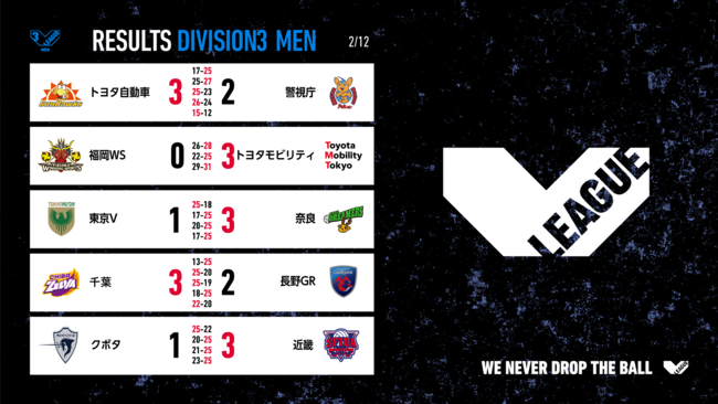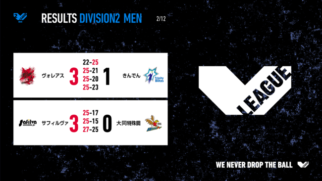 バレーボール国内最高峰リーグ V.LEAGUE【2月12日の試合結果】