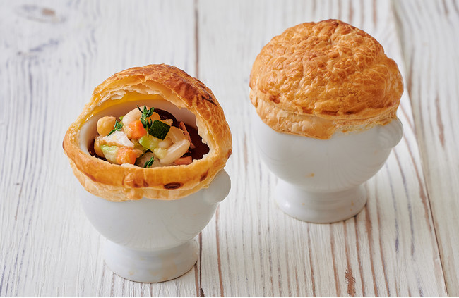 ・コラーゲンたっぷり ベーコン、野菜のハーブスープ パイ包み焼き