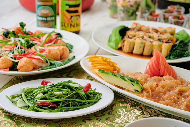 ホットディッシュコーナーでは、脂身が多い豚バラ肉を八角と甘めの醤油でじっくり煮込み、味をしっかり染み込ませた柔らかな台湾風角煮と、海老の旨味と歯ごたえがある湯葉包み揚げをご堪能いただけます。ランチタイムには、台湾朝ごはんの定番の大根餅、豚肉と風味豊かなニラをふんだんに使用し、皮がパリパリに香ばしく焼き上がったニラ饅頭を提供。ディナータイムには台湾料理では欠かせない色鮮やかな空心菜炒めをお届けいたします。4月29日から5月29日まで期間限定でランチタイムには台湾のソウルフードとも称される、八角や五香粉などの香辛料で煮込んだ豚バラ肉とご飯との相性が抜群の「魯肉飯(ルーローハン)」を、5月30日から6月30日までは豚ひき肉とニラをたっぷり使った台湾風ラーメンをお楽しみいただけます。
