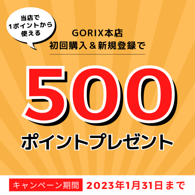11/16(水)12:00~1/31(火)23:59まで、GORIX 公式オンラインショップ本店( https://bit.ly/3C5tOn0 )で、初回購入者500ポイント付与キャンペーンを開催。
