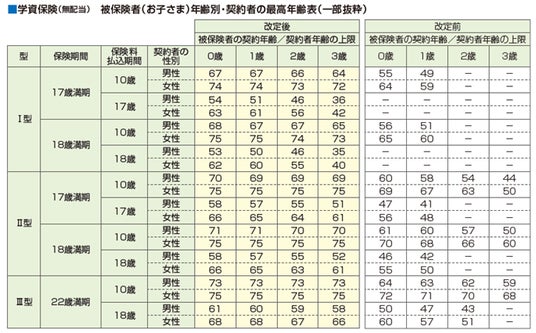 保険料率の改定に伴い、一部種目の販売再開やご契約可能な年齢範囲の変更がございます。代表的な保険期間・保険料払込期間について、改定前後のご契約可能な年齢範囲を以下に記載しております。