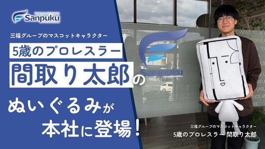 株式会社三福ホールディングス(本社:愛媛県松山市)は、三福グループのマスコットキャラクター「5歳のプロレスラー 間取り太郎」の大型ぬいぐるみを本社3階に設置しました。