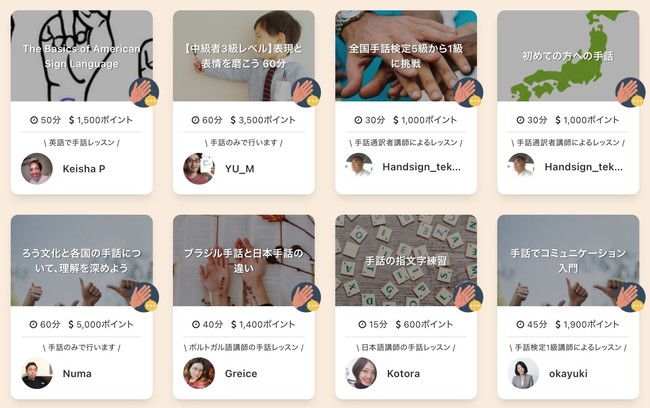 気軽に挨拶だけ学びたい方など初めて手話を学ぶ方向けの入門レッスンから、全国手話検定に取り組みたい方や、より表現力をつけたい中級以上~の方にも対応するレッスンが揃っています。