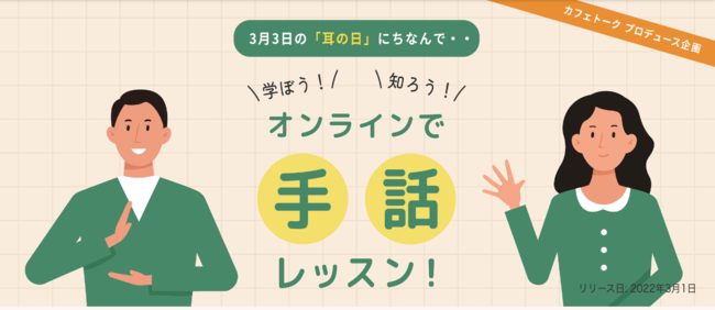 3月3日の「耳の日」にちなみ、オンラインで受講できる手話レッスンをご紹介する特集ページを公開いたしました。