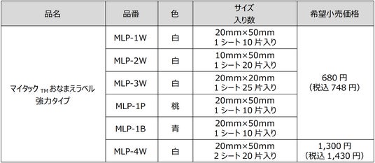 ニチバン株式会社(本社:東京都文京区、代表取締役社長:高津敏明)は、繰り返し行う洗濯・乾燥でもはがれない「マイタック(TM)おなまえラベル 強力タイプ」〔希望小売価格680円~1,300円(税込748円~1,430円)〕を、2025年11月10日(メーカー出荷)から発売します。