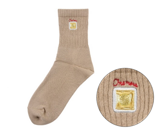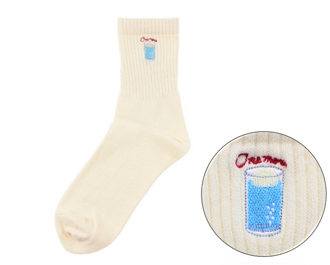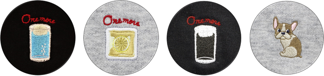 シンプルでカジュアルなリブソックスは、スィートでキュートな刺繍モチーフがアクセント。Onemoreの文字とともに看板メニューのクリームソーダやレモンを乗せたフレンチトーストのモチーフがノスタルジックな雰囲気。
