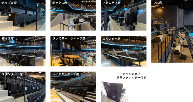 また、来場された方がそれぞれのスタイルで過ごせるよう、観客席のバリエーションは国内最多を誇り、全ての席はドリンクホルダーを備え、多彩な演出をそれぞれの過ごし方で楽しむことができます。