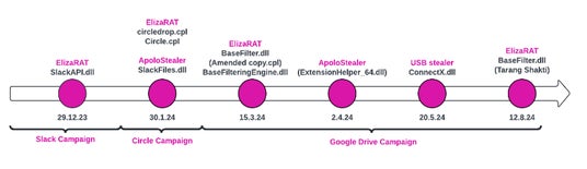 ElizaRATの進化は、APT36がインドの組織を標的とするマルウェアの検知回避能力と攻撃効果を高めるための戦略的な取り組みを示しています。Googleドライブやテレグラム、Slackなどのクラウドサービスをコマンド&コントロールシステムに組み込むことで、日常的なネットワークトラフィックの中に攻撃活動を隠蔽しています。また、ApoloStealerのような新たなペイロードの追加は、APT36のマルウェア開発能力の大幅な向上を表しており、ペイロードの展開がより柔軟かつモジュール化されたアプローチへとシフトしていることを示しています。 これらの手法は主にデータの収集と窃取に重点を置いており、継続的な情報収集とスパイ活動への注力を裏付けています。