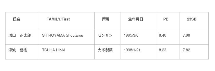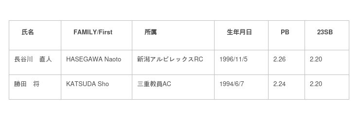 ※SB(Season Best):シーズンベスト