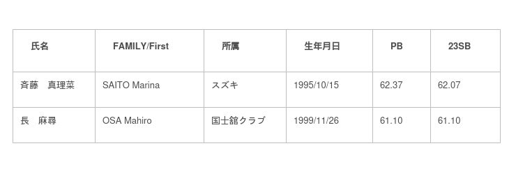 女子100mハードルには、先週末に行われた日本グランプリシリーズ・木南記念を自己ベスト12秒86(日本歴代2位タイ)で制した寺田明日香(ジャパンクリエイトグループ)、日本グランプリシリーズ・織田記念で日本人4人目の12秒台に突入し、木南記念で更に自己記録を12秒91(日本歴代4位)まで伸ばした田中佑美(富士通)が追加決定。日本歴代1~4位が揃い、日本選手権の前哨戦としても注目です。