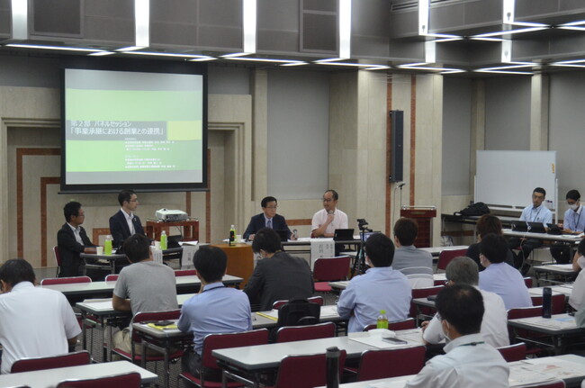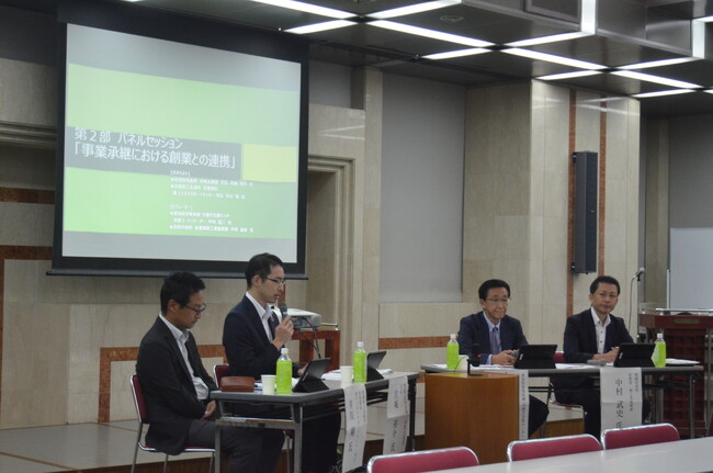 第2部は、パネルディスカッション「事業承継における創業との連携」で、ここでは後継者不在の中小企業を存続させるための選択肢となる創業希望者と引き合わせることを考えました。登壇したのは、豊橋市内の事業承継支援機関である愛知県事業承継・引継ぎ支援センター、豊橋商工会議所、豊橋信用金庫の担当者です。