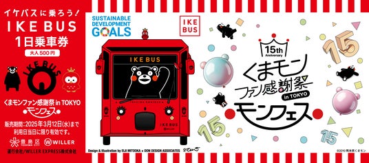WILLER(代表:村瀬 茂高)は、2025年2月22日(土)・23日(日)の2日間池袋で開催される「くまモンファン感謝祭2025 in TOKYO ~モンフェス~」の連動企画として、「IKEBUS」と熊本県の営業部長兼しあわせ部長「くまモン」が池袋のまちを盛り上げるコラボ企画を、2月22日(土)~3月12日(水)までの期間限定で実施します。