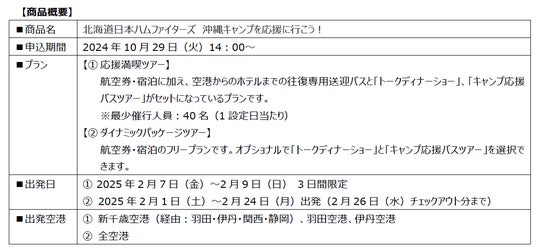 ANA X株式会社(代表取締役社長:神田 真也、本社:東京都中央区、以下「ANA X」)は、10月29日(火)14:00より国内旅行「北海道日本ハムファイターズ 沖縄キャンプを応援しよう!」を発売します。