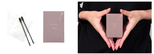 黒色の綿棒とコットンをセットにした、上品なバニティキット。個包装仕様で清潔に保てるうえ、片側が綿棒・もう片側が耳かきになった二機能タイプで、細やかな使い心地にも配慮しました。また、一般的な白綿棒ではなく、あえて黒を採用することで、ホテル・旅館の客室にシックで洗練された印象をもたらします。