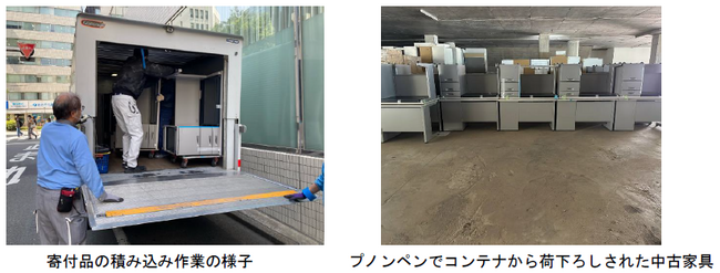 家具の寄付方法について模索していたところ、NXグループの日本通運株式会社(代表取締役社長:堀切 智)とNX商事株式会社(代表取締役社長:秋田 進)がカンボジアへ中古オフィス家具を寄付する取組みを行っていることを知り、両社の協力を得ることとなりました。カンボジアは経済発展が進む一方、教育や社会福祉の分野においては引き続き支援が必要とされています。その中でも、教育機関や公共機関は資金不足や設備の不備といった課題に直面しています。これらの課題解決に寄与するべく、損害保険業界では初めてNX商事の中古オフィス家具海外寄付事業「どねサッと」に参画し、自社の中古オフィス家具を提供することとなりました。