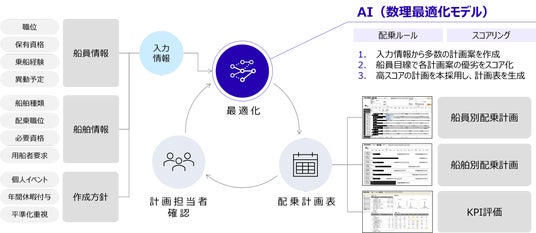 株式会社商船三井(本社:東京都港区、代表取締役社長:橋本 剛、以下、「商船三井」)と富士通株式会社(本店:神奈川県川崎市、代表取締役社長:時田 隆仁、以下、「富士通」)は、当社船員(以下、船員)の配乗計画を最適化する最適化AI配乗計画システム(以下、本システム)を共同で開発しました。2025年5月以降の業務適用に向け、最終フェーズに移行予定です。