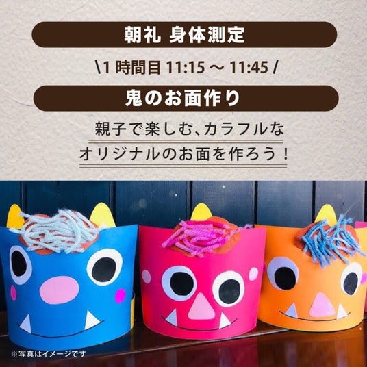 1月のテーマは「鬼のお面作り」と「豆まき」、さらにベビーマッサージや月齢フォト撮影会も実施!赤ちゃんと一緒に楽しく学び、心に残るひとときを過ごしませんか?