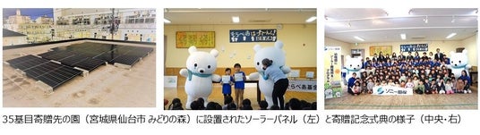 ソニー損保が過去に寄贈した「そらべあ発電所」については、「寄贈記念式典レポート」をご参照ください。(*1)「そらべあ発電所」寄贈先は、そらべあ基金が選定します。なお、同基金では、賛同企業からの寄付をもとに「そらべあ発電所」を全国の幼稚園や保育園に寄贈する取組みを「そらべあスマイルプロジェクト」と称しているため、リンク先ページのタイトルは「そらべあスマイルプロジェクト」となっています。