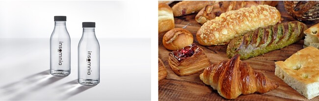 御宿泊のお客様には、「insomnia」オリジナルボトルを1つプレゼント致します。マイボトルでお好きなソフトドリンクをお好きな時間にお選びください。またラウンジでは、種類豊富なパンやデニッシュをご用意しております。お部屋でのおくつろぎ時や観光のお供に、ぜひご利用くださいませ。