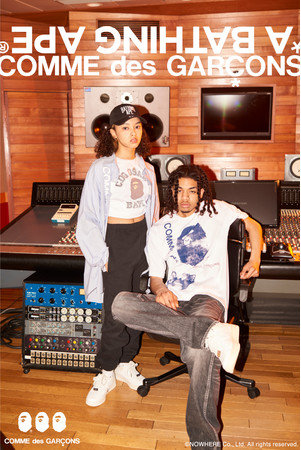 同時に、COMME des GARCONS、BAPE(R)︎のアイコンを惜しみなく配置することで、東京をオリジンとする両者のストリートイズムを表現しています。