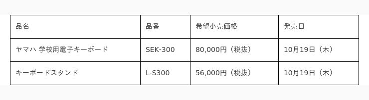 株式会社ヤマハミュージックジャパンは、学校用電子キーボード『SEK-300』とキーボードスタンド『L-S300』を10月19日(木)に発売します。