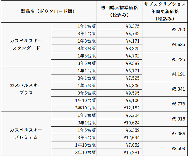 ■ カスペルスキー公式ストア ダウンロード版ライセンス体系と価格