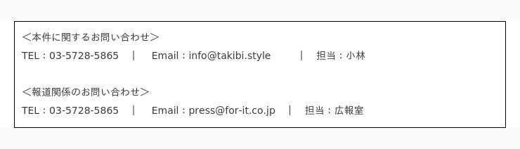 TAKIBI media:https://www.takibi-reservation.style/media/