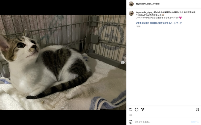 愛知県豊橋市は、市保健所で保護している犬や猫の暮らしぶり、整備を進めている動物愛護センター(仮称)の最新情報を発信するため、画像共有アプリ「インスタグラム」を開設しました。アカウント名は「toyohashi_aigo_official」。動物愛護に関するイベント情報の告知も行なっていきますので、ぜひ、みなさんフォローをよろしくお願いします。