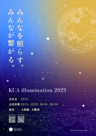 瓜生山キャンパス・人間館の大階段をイルミネーションによってアートな空間に演出し、学生や地域の方々、目の前の白川通りを行き交う方々を明るく照らし、イルミネーションを楽しんでいただくプロジェクトです。2005年から始まり、今年で16年目を迎える歴史のある社会実装プロジェクトです。