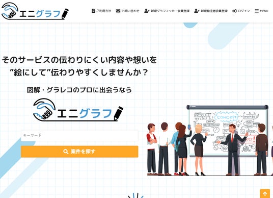 株式会社カスタメディア(本店:大阪府 代表取締役:宮崎 耕史)は、マッチングサイト・シェアリングエコノミーサイト構築パッケージ「カスタメディアMASE」をベースに、グラフィックレコーダーとしても著名なとんぷ氏が運営するグラフィックレコーディングのプロと出会えるマッチングプラットフォーム『エニグラフ』を構築しました。