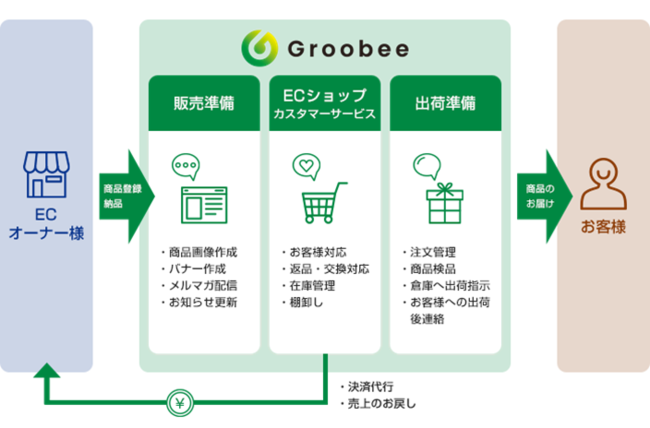 更なる利便性を追求すべく、オンラインだけでは完結する事ができない「在庫管理」や「物流」という包括的なサービスを目指してGroobee様との連携を決めました。