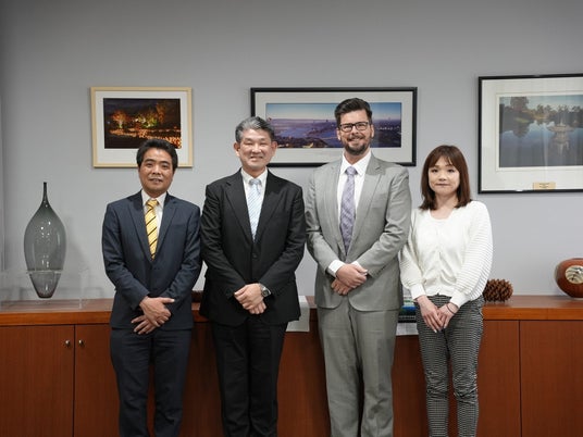 (2025年4月来訪:↑写真左より:Drupalアジア運営委員 直江 健介氏、奈良市長 仲川 げん、同運営委員長 Michael Richardson氏、同運営委員 鈴木 仁美氏)