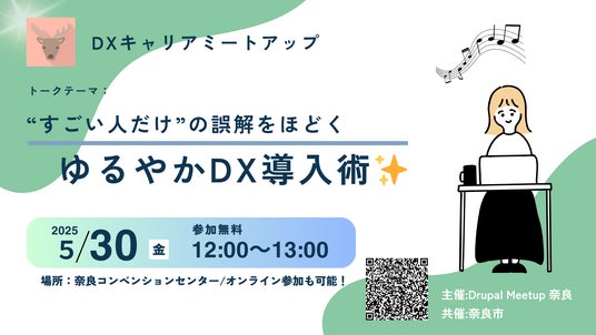 Drupal Meetup奈良(※)と奈良市が共催し、働き方や生活スタイルの変化に対応しながら、DXとDrupalの活用によってキャリアの可能性を広げる交流イベントを毎月開催しています。