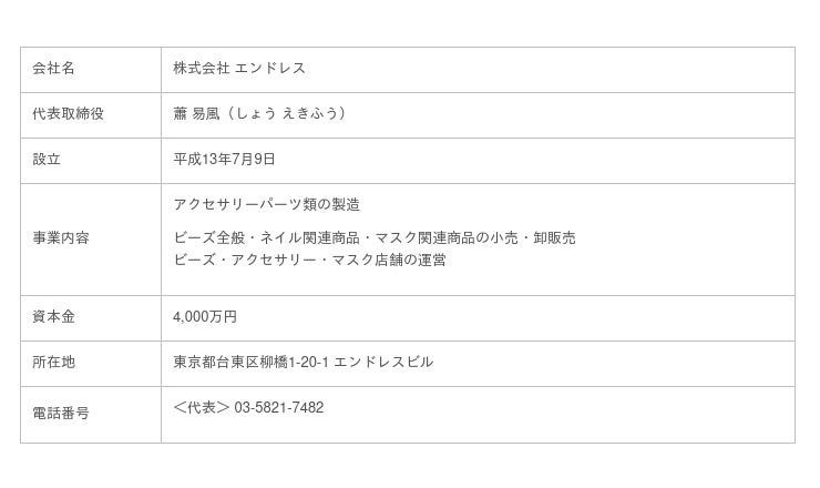ビーズやアクセサリーパーツなどの企画・製造・販売をする株式会社エンドレス(本社:東京都台東区、代表:代表取締役 蕭(しょう)易風(えきふう))が運営する「PARTS CLUB (パーツクラブ)」 https://www.partsclub.jp/ の一部店舗では、スタッフがアクセサリーの作り方をお教えする「手作り教室」を開催。ららぽーと海老名店(神奈川県海老名市)にてお作りいただける作品と開催スケジュールをご案内いたします。