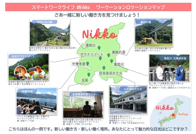 美しい自然と様々な歴史が行き交う日光の代表的なワーケーション模様をワーケーションロケーションマップ