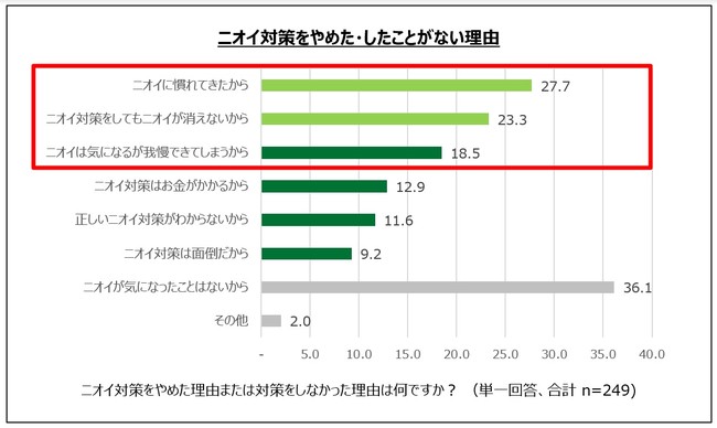ニオイ対策をやめる人の理由TOP3は、