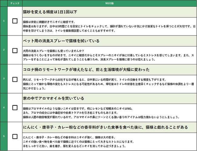 猫様もニオイに敏感!獣医監修「ニオイストレスチェックシート」