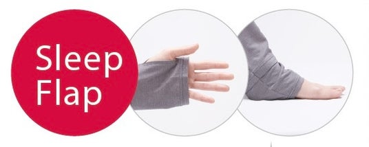 「スリープフラップ」(手首足首二重構造)は、日本睡眠科学研究所の研究により出来上がった構造体です。就寝前に手首や足首を温めることでスムーズな入眠をサポートします。