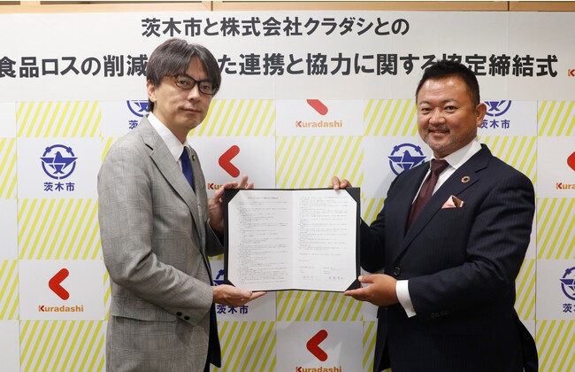 ソーシャルグッドマーケット「Kuradashi」を運営する株式会社クラダシ(本社:東京都品川区、代表取締役社長:関藤竜也、以下「クラダシ」)は、大阪府茨木市とフードロス削減に向けた連携協定を締結いたしました。