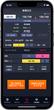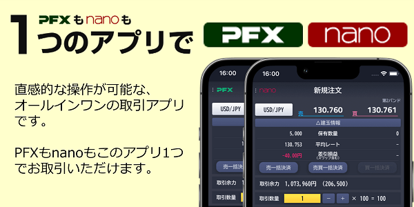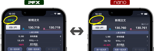 大きな数量の取引が可能なパートナーズFXも、少額からはじめられるパートナーズFXnanoも、どちらにも切り替えられるので、アプリ1つで両方のサービス利用が可能になりました。