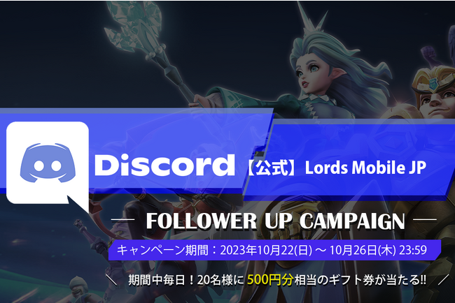 スマートフォン向けゲームアプリのグローバルメーカーIGG(グループCEO: Zongjian Cai 香港証券取引所上場 日本所在地:東京都新宿区)は、世界同時対戦RPG『ロードモバイル』の公式Discordにてフォロワーアップイベントを開催中です。
